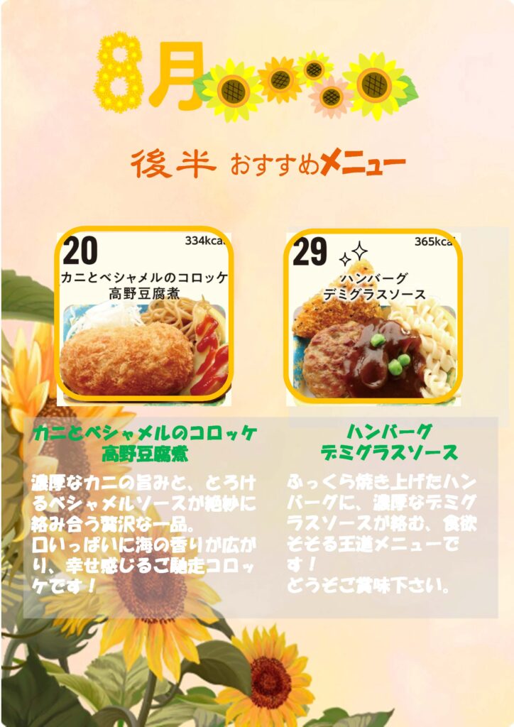 8月後半のおすすめメニューです。