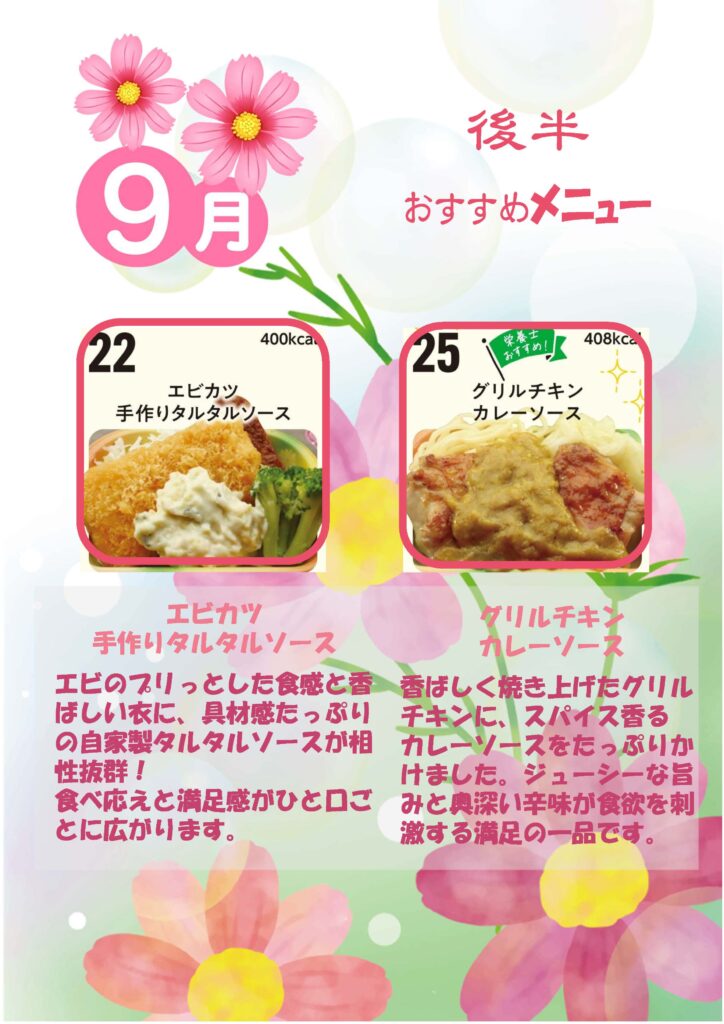 9月後半のおすすめメニューです。